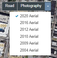 Additional years of Orthophotography can be accessed by using the dropdown button on the right side of the tool.