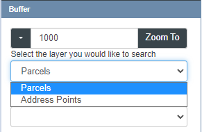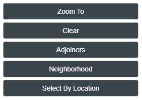 Clicking on the Select By Location button in the details window, will bring up the Buffer dialog to allow you to search by a distance from the selected parcel.