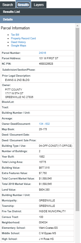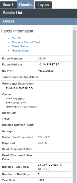 Welcome to the Pitt County Online Parcel Information System (OPIS) where you can search and view information from the County's parcel database using several different methods. OPIS allows users to search by property owner name, address, parcel number, recorded deed reference and many more attributes and offers an interactive selection tool. OPIS allows users to view several different data layers with ability to turn on and off layers and view the data on the map at different scales.