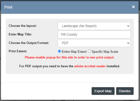Clicking on the Print Button brings up the print dialog. (See printing topic for more details)