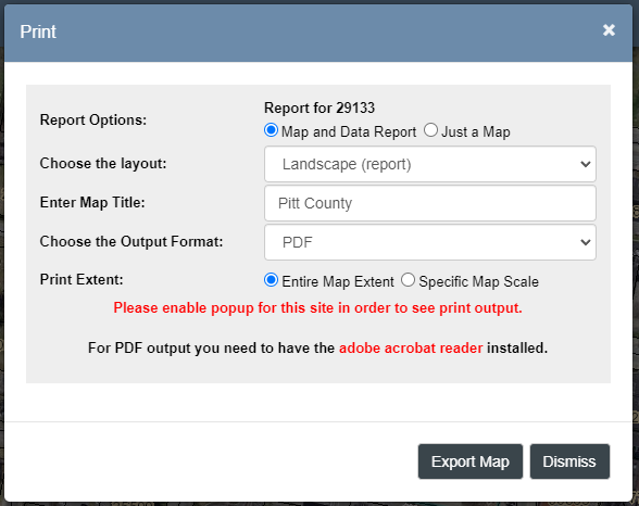 Clicking on the Zoom Full Button zooms the map out extent of the county.