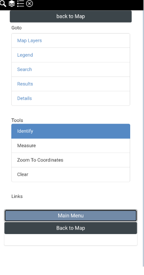 Note: If you identify a feature on the map, it will reopen a closed side panel to enable you to see the information.